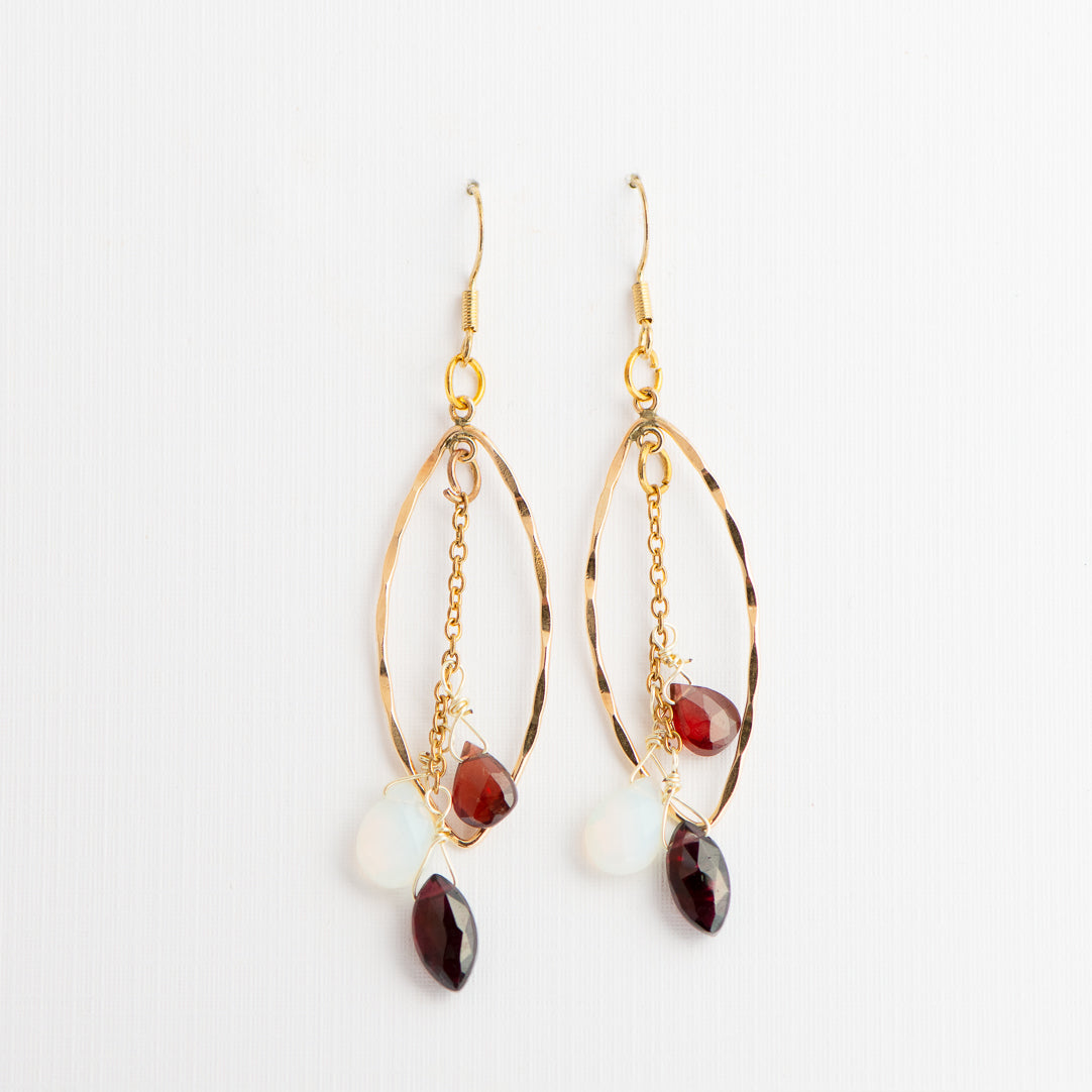 Garnet and Opal Earrings with Marquise on Gold-Filled French Wire