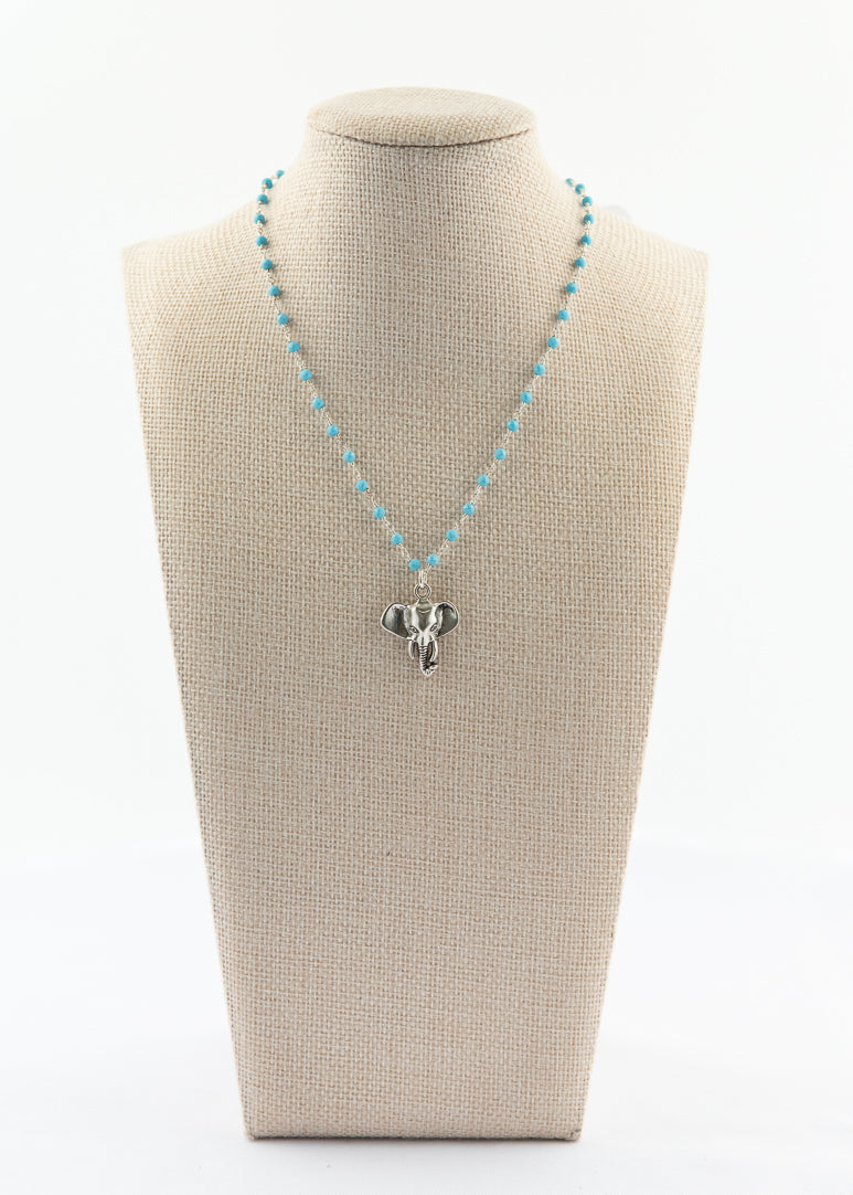 The gift you love to give and get, this darling 3mm turquoise chain features a silver elephant pendant. Elephants are known for their intelligence, long memory and strong family bonds.