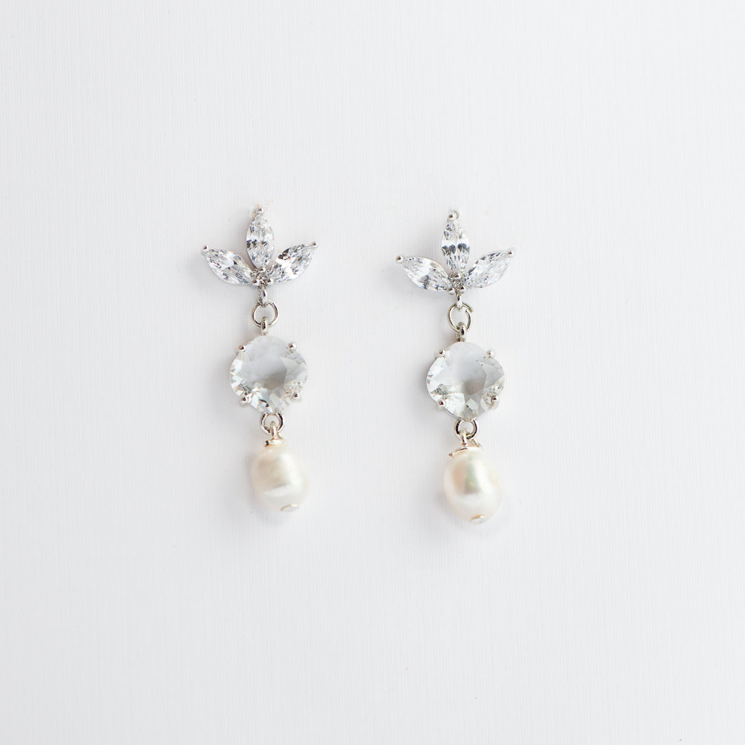 Freshwater Pearl Earrings on AAA Grade CZ Leaf Posts with Faceted Lucite in White Gold