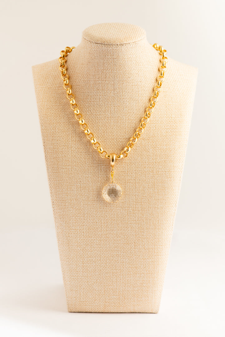 Gold Plated Lucite Drop on Matte Gold Rolo Chain